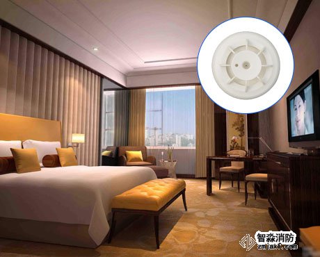 在每個房間設(shè)置感煙探測器,感煙探測器的數(shù)量計算參照《火災(zāi)自動報警系統(tǒng)設(shè)計規(guī)范》,一個感煙探測器的最大保護面積可以達到80平方米。走道電梯前室等地也應(yīng)布置感煙探測器。探測器的布置原則應(yīng)滿足在寬度小于3m的內(nèi)走道頂棚上設(shè)置探測器時,宜居中布置。感煙探測器的安裝間距不應(yīng)超過15m;探測器至端墻的距離,不應(yīng)大于探測器安裝間距的一半。