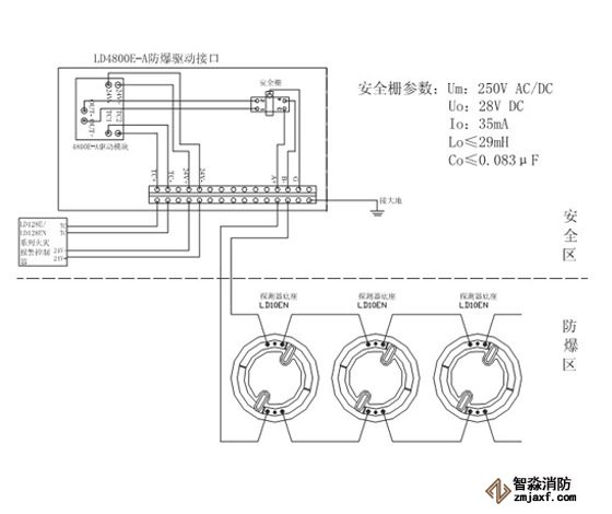 防爆煙感探測(cè)器接線圖: