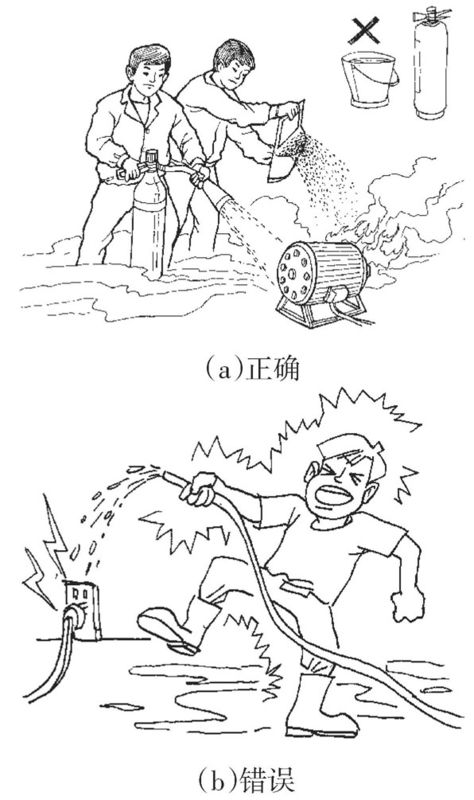 (2)帶電救火。如果無法切斷電源或時間緊迫來不及切斷電源時,可實施帶電救火。帶電救火是一項危險的操作,必須注意下列安全事項。